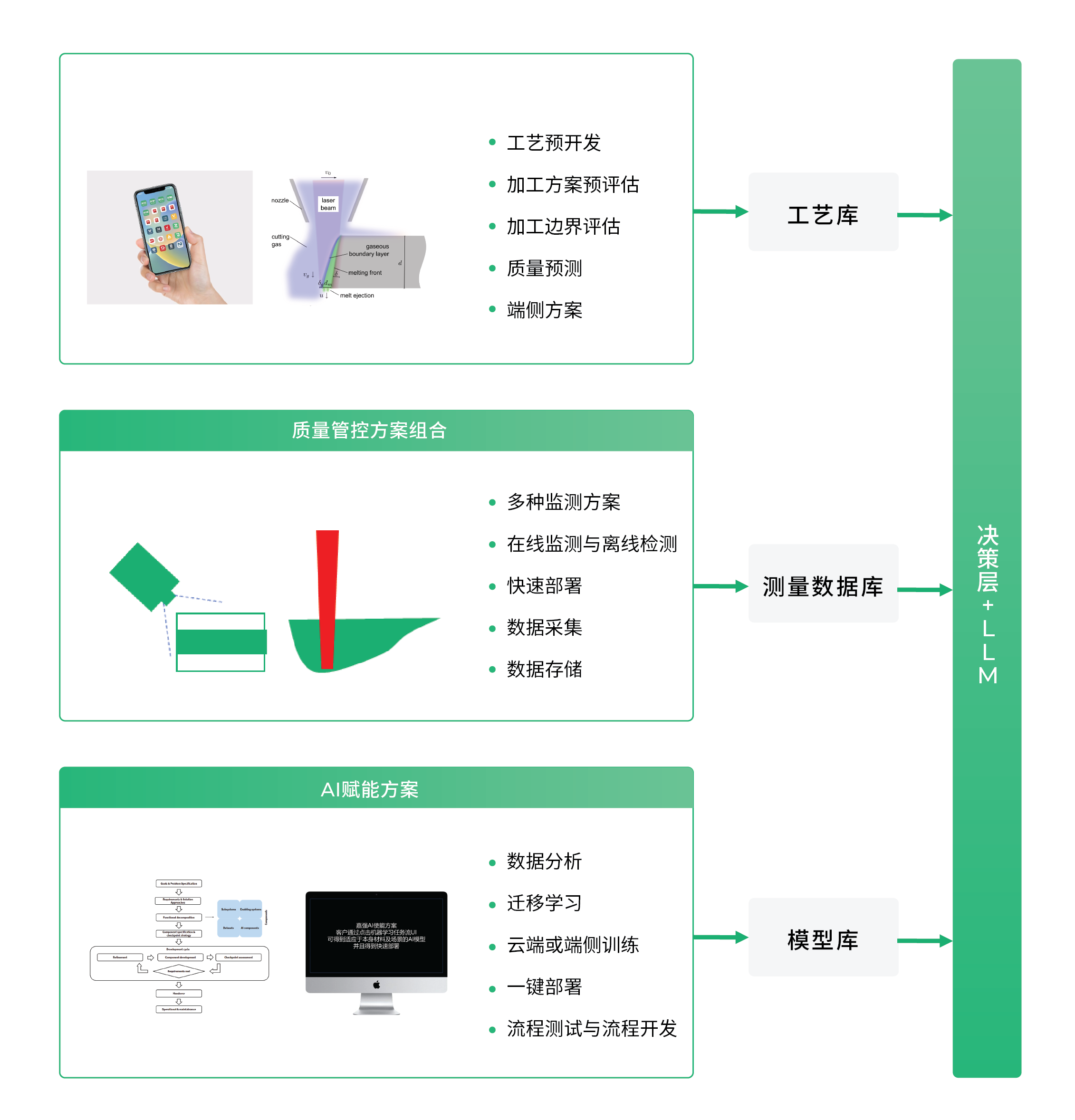 LaserGPT昰(shi)激光製(zhi)造(zao)領(ling)域(yu)的(de)一(yi)套Alagent system 智能(néng)體(ti)體(ti)係(xi),充分(fēn)利用(yong)了(le)大(da)語言模型的(de)賦能(néng)來進(jin)行任務(wu)規劃,語義理(li)解,數(shu)據理(li)等(deng)工(gong)作(zuò);充分(fēn)集(ji)成(cheng)了(le)激光製(zhi)造(zao)領(ling)域(yu)的(de)知識,模型與數(shu)據。LaserGPT智能(néng)體(ti)的(de)交互方(fang)式(shi)包含與人(ren)的(de)交互,與機(jī)器(qi)的(de)交互以(yi)及(ji)與係(xi)統的(de)交互;利用(yong)知識圖譜,物(wù)理(li)模型,數(shu)據驅動(dòng)模型等(deng)工(gong)具(ju)使得使用(yong)場(chang)景可(kě)動(dòng)态拓展(zhan)。